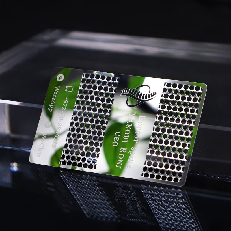 Fashion Metal Hollow Business Card Chinese Supplier Shiny Mirror Metal Business Card With Silver Plated